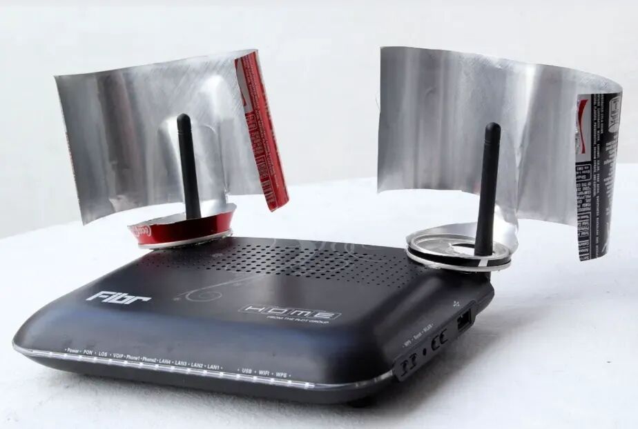 另外,之前网上流传过一种方法,说是只要把易拉罐(或者铝箔纸)套在天线后面,把天线的信号朝着你所在的方向反射,能够增强信号。