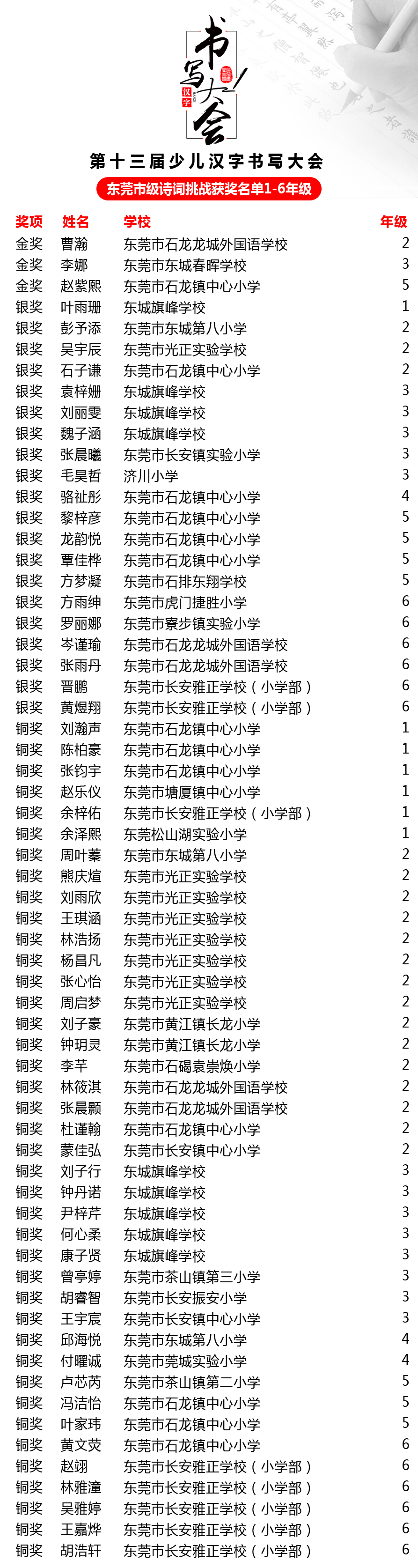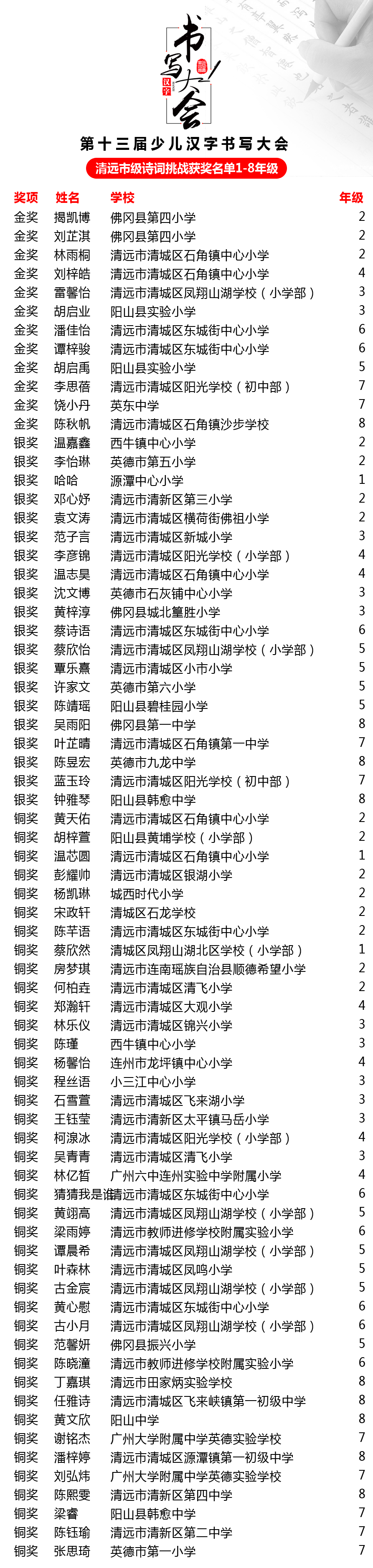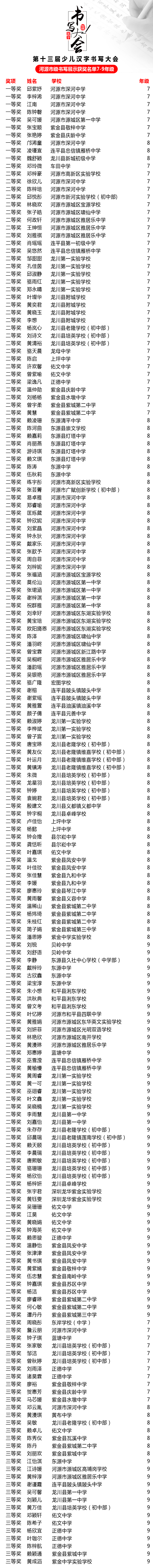 在刚结束的第十三届少儿汉字书写大会中,全省共有8009所学校的105万余名学生参与,创历届新高。经严格评审,共产生: